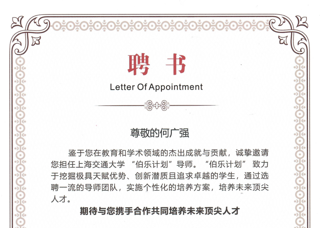 祝贺何广强教授获得2025年度“伯乐计划”导师称号